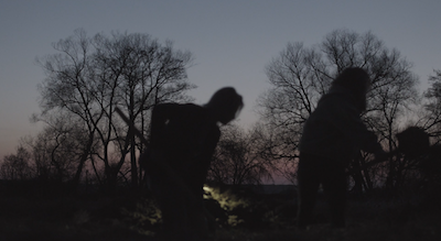 A dreamlike ride through an apocalyptic northern landscape. A man is tracking elk by the side of a field. In the distance a harvester glides among the trees like a great iron beast. The landscape awakens as we ride through it half asleep. Cracking Sound is a frenzied journey to the heart of the end times, to man’s need to control nature and rise above it.