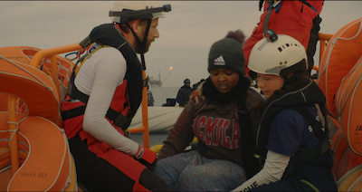 Bobbing around on Mediterranean waters aboard the Ocean Viking, aid workers from the French relief service SOS Méditerranée gaze at the horizon. Is that a rubber dinghy in the distance, or is it garbage? The organization sails up and down the Libyan coast looking to pick up refugees in boats. On board is a 30-strong team ready to offer help and support refugees with their asylum applications. Six weeks long, filmmaker Jean-Baptiste Bonnet Met uses a simple camera to track events on board, from departure to arrival. It’s not long before they pick up a group of 92 people of many nationalities from a dilapidated boat. The aid workers give the refugees life vests, and provide blankets, beds, and water. And then they start documenting their often terrifying escape stories. It is several weeks before they reach their destination on the north Italian coast. Along the way the refugees help with the cooking, share experiences and photographs, and return to an almost normal way of life in this beautifully filmed tribute to compassion.