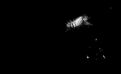 Like a single film frame, insects flash for the fraction of a second, only to immediately withdraw from the field of vision again. In between their flickering body fragments, the film shows undefinable voids. What can be seen when familiar filters of vision and the narratives associated with them are missing?