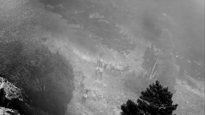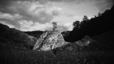 In an elongated pan, mountain landscapes and misty images of animals are presented in an ethereal, ghostly way. Locus uses found footage black and white photographs of UFO observations from the 1950s and 60s. The UFOs are removed from these photos to seamlessly merge the remaining landscapes. Unforeseen animal death, often reported in UFO sightings, serves as a metaphor for human influence on nature. Intruders explores the boundary between science fiction and reality, investigating themes of reverse colonization, ecology, and human environmental impact.