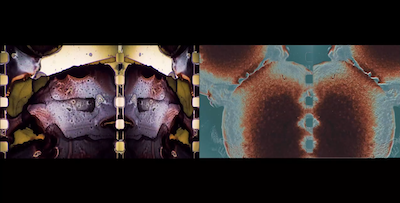 This is a 2 channel installation consisting of two separate films made by painting directly onto 35mm film and working with various chemical solvents. The two films are projected side by side and slightly out of sync, creating a type of 'visual stereo' as they make random juxtapositions. The soundtrack being slightly out of sync creates an echo, so as the audience moves around the installation the sound changes, creating an aural sense of the space.